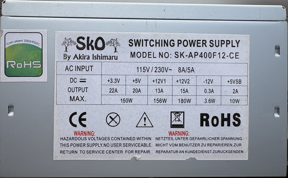 Akira SK-AP400F12-CE 400W ATX PC tápegység 12 cm-es hűtőventilátorral