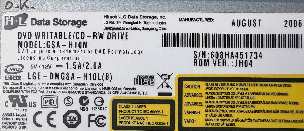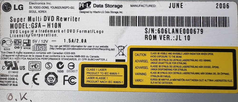 HL-DT-ST DVD-RW GSA-H10N IDE DVD író fekete fehér 2006
