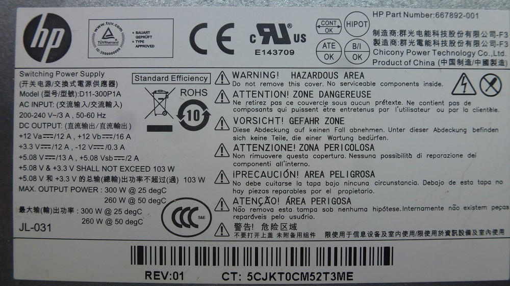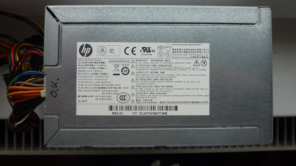 HP D11-300P1A 300W ATX PC tápegység 8 cm-es hűtőventilátorral JL-031 667892-001