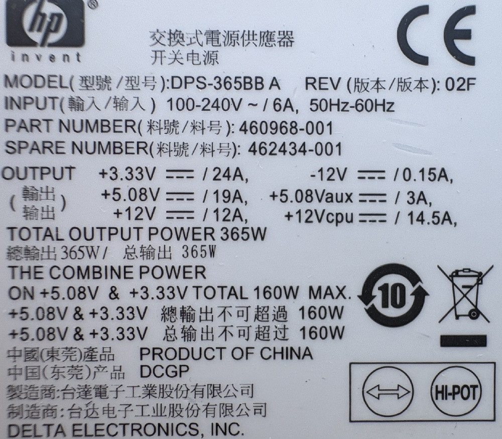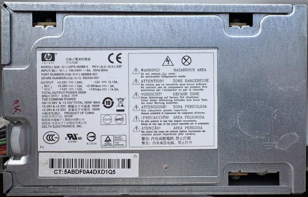 HP DSP-365BB A Rev. 02F 365W ATX PC tápegység 8 cm-es hűtőventilátorral