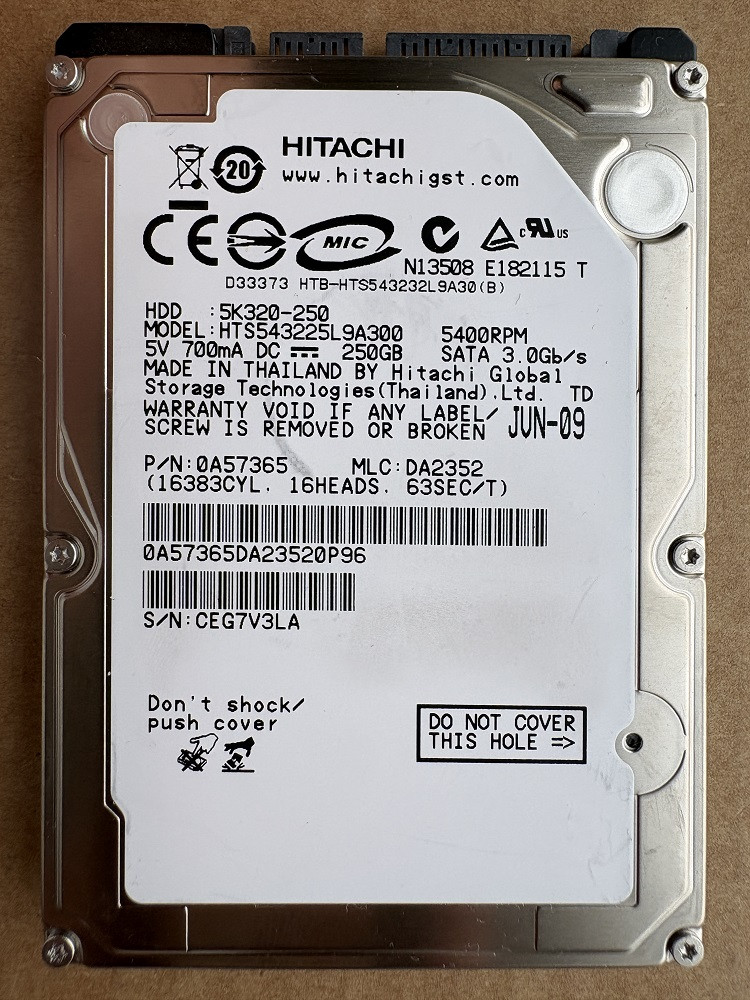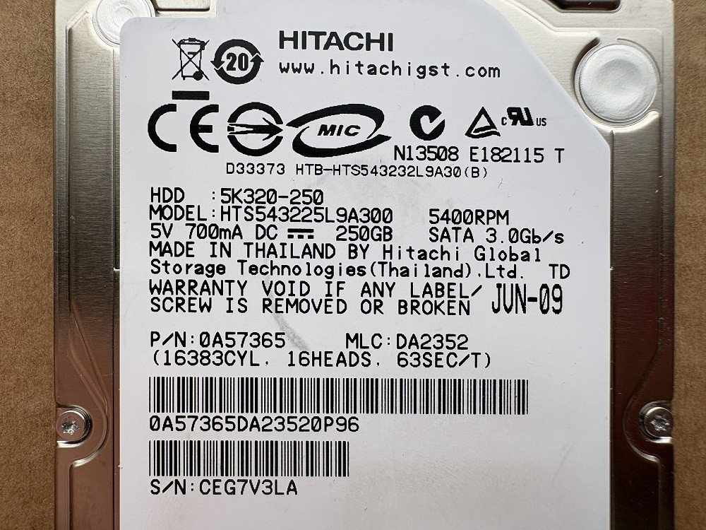-- Fizikai Lemez Információ - Lemez: #0: Hitachi HTS543225L9A300 --