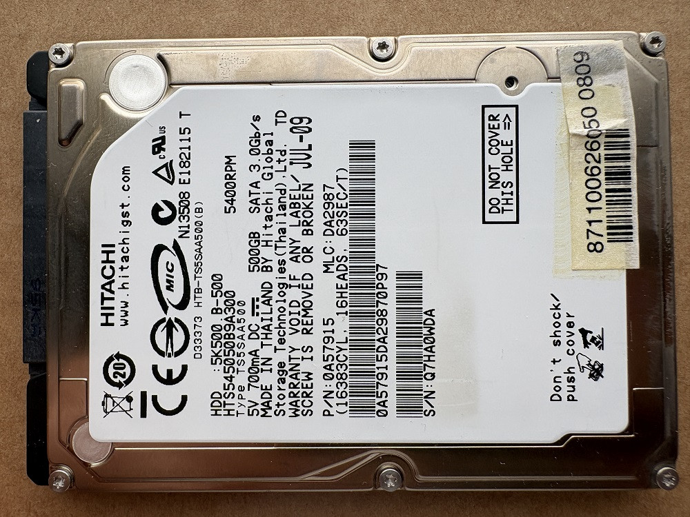 hibás Hitachi HTS545050B9A300 500GB 2,5" Sata notebook HDD merevlemez 100%/66% Travelstar 5K500.B