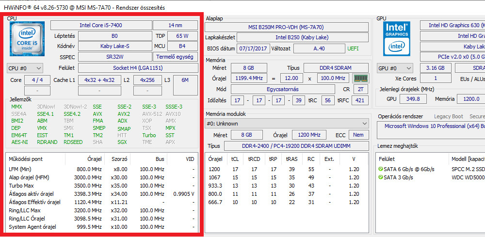 Intel Core i5-7400, 3400 MHz (34 x 100) LGA1151 cpu SR32W cpu processzor