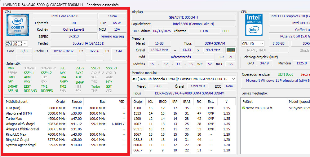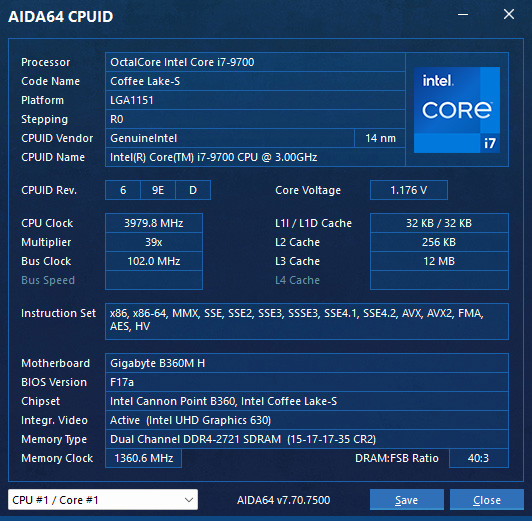 Raktárkészlet 1 dbCikkszám i7-9700Státusz ÚJ  Tömeg 150 g/db