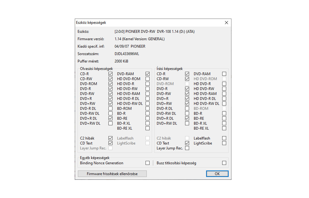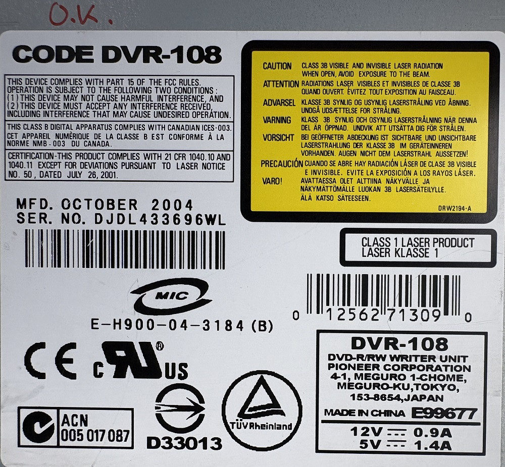 Pioneer DVR-108 DVD-RW IDE DVD író fehér 2004