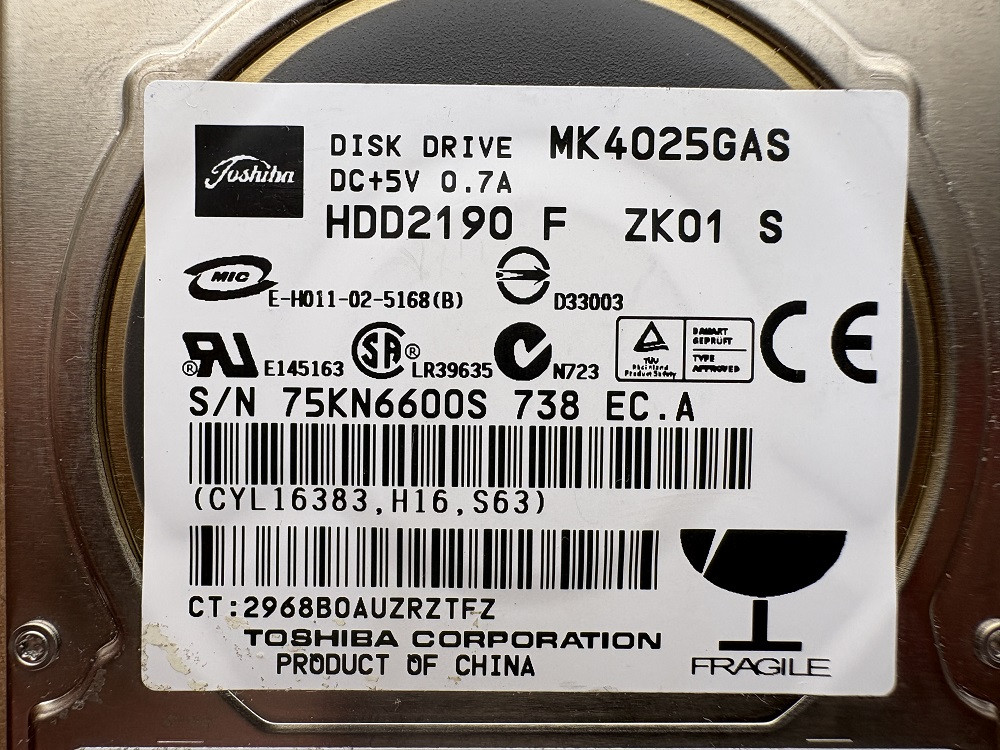 -- Fizikai Lemez Információ - Lemez: #4: TOSHIBA MK4025GAS --