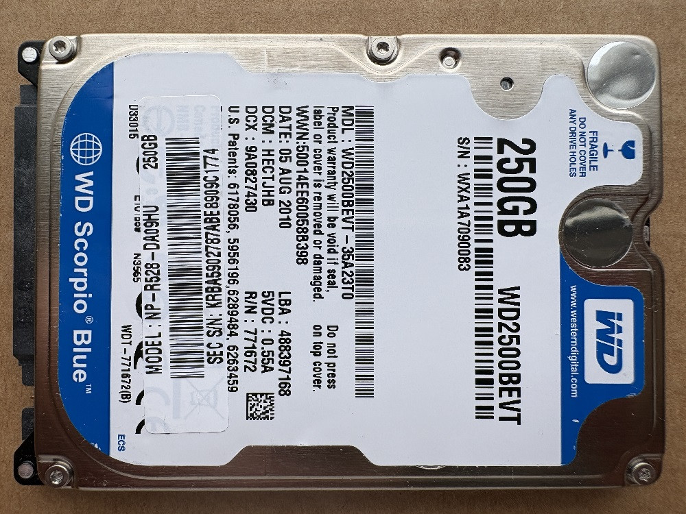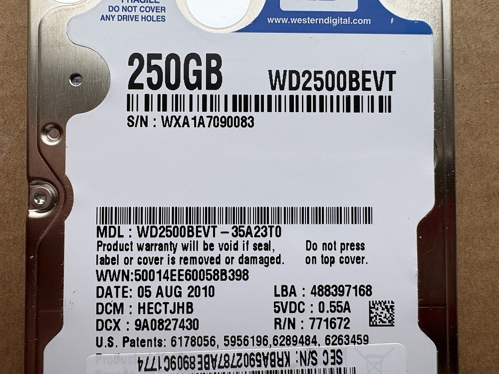 Lemez modellszám . . . . . . . . . . . . . . . . : WDC WD2500BEVT-35A23T0