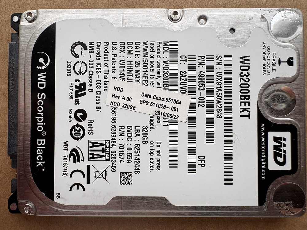 WDC WD3200BEKT-60V5T1 320GB 2,5" Sata notebook HDD merevlemez ???%/???% Scorpio Black