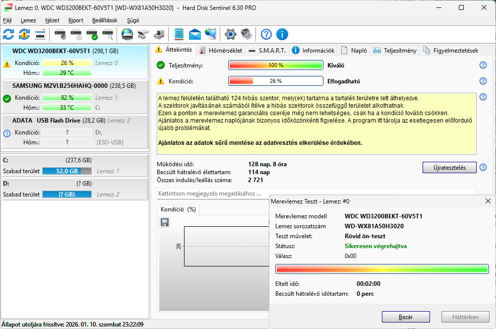 100%/26%: 1 dbCikkszám WD3200BEKT-60V5T1Státusz ÚJ  Tömeg 100 g/dbA vásárlás után járó pontok 100 Ft