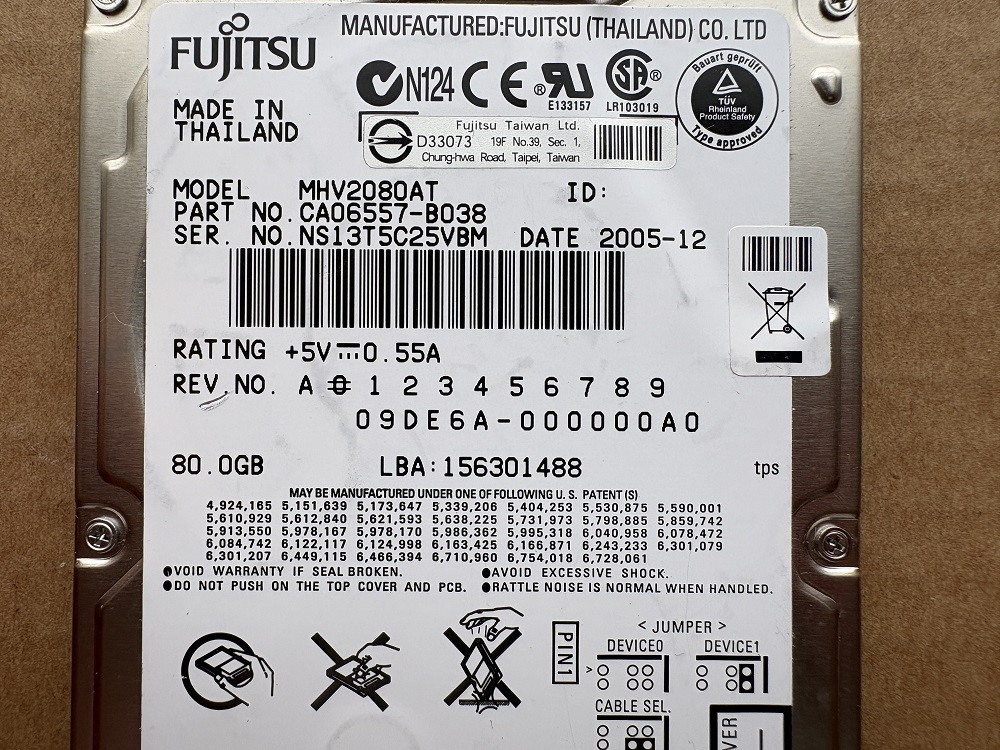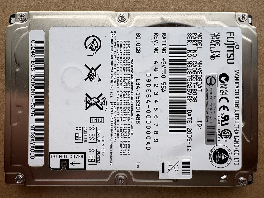 felpörgési hibás Fujitsu MHV2080AT IDE 80GB IDE 2.5" Laptop HDD merevlemez - oktatási célra ingyenes