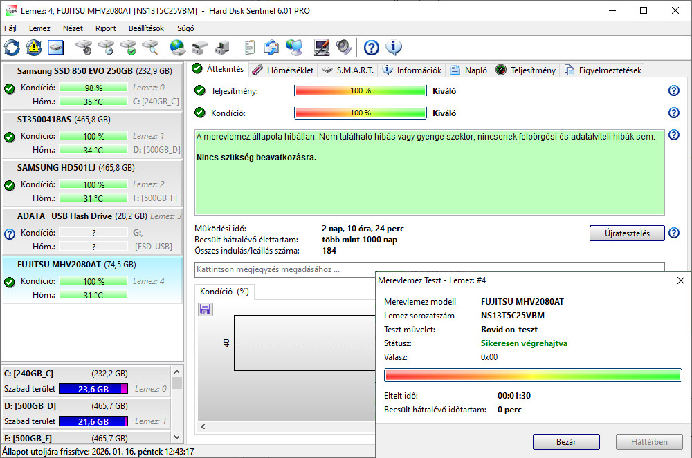 Utolsó rövid ön-teszt dátum . . . . . . . . . . : 2026. 01. 16. 12:37:09