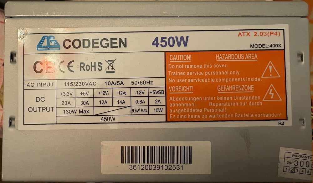 CODEGEN 450W ATX PC tápegység 12 cm-es hűtőventilátorral